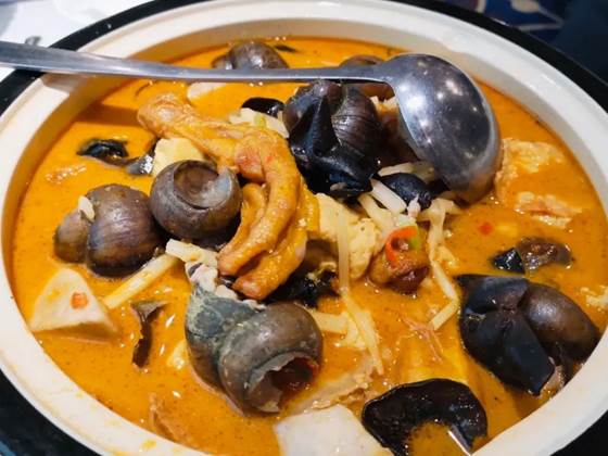 拆骨凤爪和自选瓦罐汤是必点,凤爪炖得很透,十分下饭,瓦罐汤是江西一大特色,品类选择多,也比较养生。整体味道还是很OK的,毕竟是老牌餐厅了,另外比较推荐南昌拌粉和 庐山石鸡,江西菜普遍重油又辣,配饭神器。