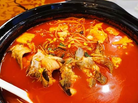酸汤鱼里的汤是自己发酵的,够酸也够鲜,味道十分正宗,酸汤配上米饭再来上几口乌江鱼,简直不能太爽,难怪每桌都点。喜欢吃辣的还可以再加点一份辣蘸水,配酸汤一起口感更加浓郁。