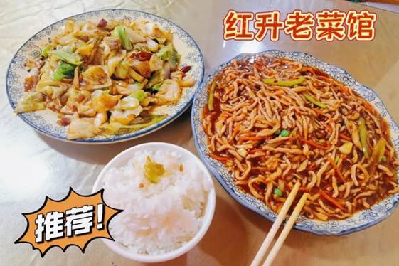 红升做的东北菜老底料、老味道,价格也实惠,人均30能吃到肚皮都挺起来。