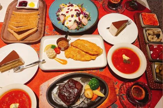 你会发现俄餐里就是各种汤汤水水,华梅的红菜汤和闷罐牛肉都是经久不衰的招牌菜,餐前面包也好吃。