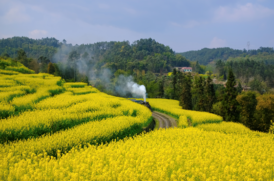 目前世上唯一还营运的蒸汽式小火车,嘉阳小火车就在这里。春暖花开,细雨霏霏,坐着嘉阳小火车赏着油菜花,绝对是一件春天美事。