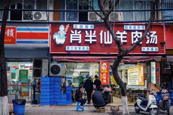 小关庙街 十足烟火气,老街美食值得探寻。这条街的特色是吃羊锅、喝羊肉汤。看着每家店门口挂着的羊,我就觉得这条路靠谱了。