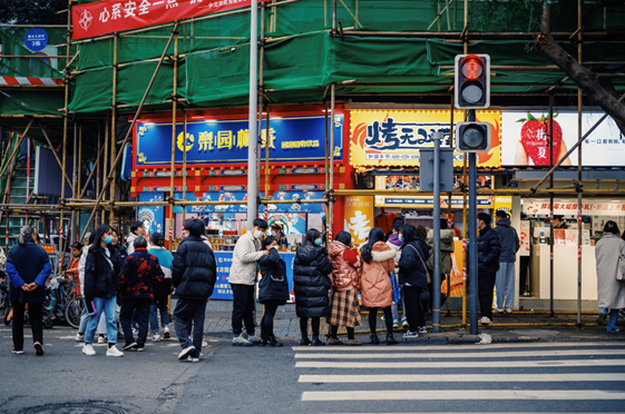 下图我拍的,很多店门口排长队是普遍现象。
