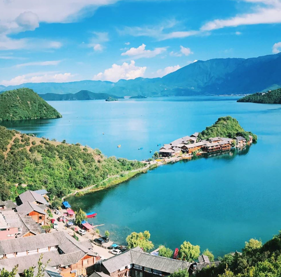而泸沽湖的水也像女孩们的心一样,纯净透亮,如一面明镜。绕湖一圈76公里,可以用包车、租电动车或是骑行的方式360°领略它的美。