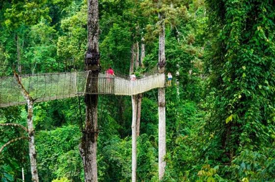 原始森林公园也是类似的景点,在望天树之间搭起的空中走廊上漫步,应该还挺刺激的。园区附近仍有少数民族居住,那些居民才是真正生活在绿色星球的人。