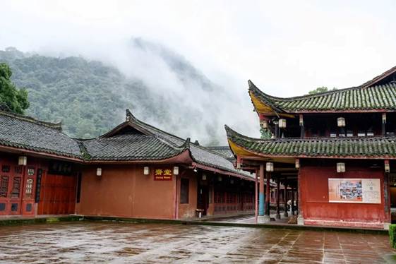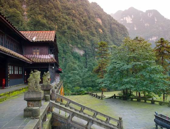 洪椿坪的 名景是“洪椿晓雨”,我在这儿住过一宿。第二天早上起来,寺院笼罩在浓雾之中,雾里看树,是挺令人印象深刻的。