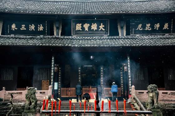 山脚下的 报国寺 ,可以安排在上山之前,或者之后。报国寺是峨眉山第一大寺院,也是入山的门户。整个寺院气势恢宏,从前往后逐层高隆,非常气派。