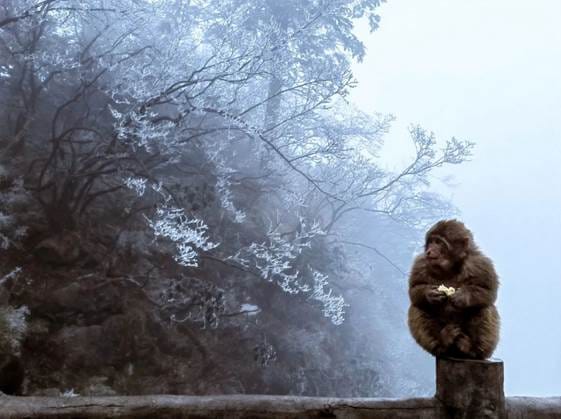 峨眉山猴子是以“刁蛮凶狠”出名的,但冬天也让他们收敛了不少。