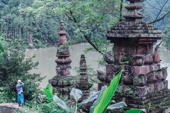 槽渔滩是一个经常被叫做“小柬埔寨”的地方,其实是因为在青衣江边的密林里有一片塔林,有108座佛塔,拍起照来的确有些神似。