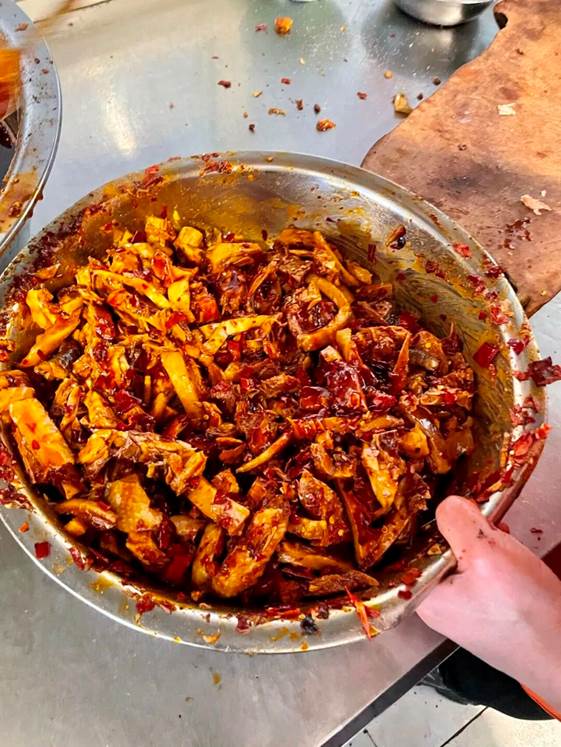 鸡用的是土鸡,偏扎实的口感,都是按斤下单现拌的,看着鸡肉上挂的红油颜色就很馋人了,入口还是很惊喜。