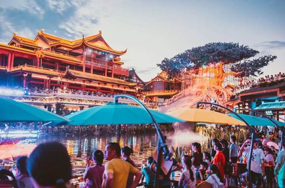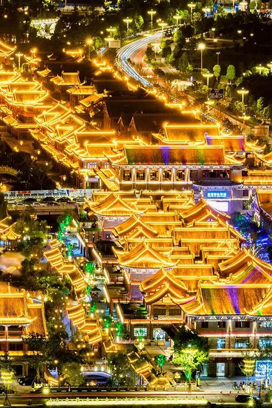 如果你喜欢大唐不夜城,那也一定会喜欢眉山水街,不过想找文化底蕴,那就来错地方了。这里是个新建的商业街区,可以理解成是 大唐不夜城的“宋代版” 。