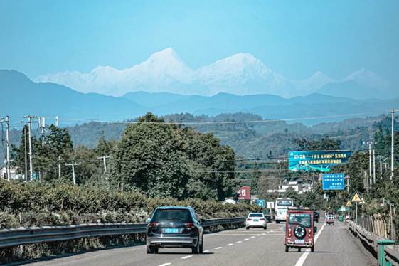 从地图上看, 眉山的位置正好卡在四川盆地与川西高原交界的地方 ,地势低且平缓,在市区就能看到川西绵延的雪山,走到哪儿都是“最佳景观台”。
