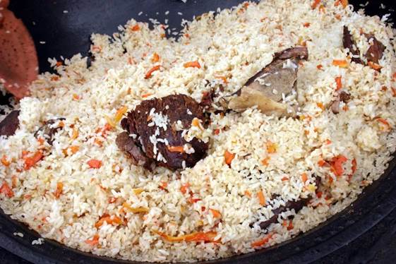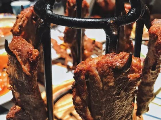 在新疆,几乎很难买到不好吃的牛肉和羊肉。除了平时常见的烤羊肉串,架子肉也是新疆特有的美味,做法是将肉分为若干块,洗净后用面粉鸡蛋包裹起来,放入洋葱、胡椒等佐料,然后放入密封的馕坑中烘烤。架子上新鲜出炉的烤肉外脆里嫩,一口流油,肥而不腻。