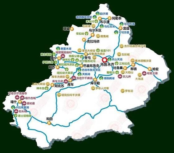 一般大家去新疆都会选择乌鲁木齐作为第一站或者一个中转站,所以上面我把乌鲁木齐和周边的景点单独拎了出来。如果直飞乌鲁木齐的机票太贵,也可以选择先飞兰州,再坐动车前往乌鲁木齐。